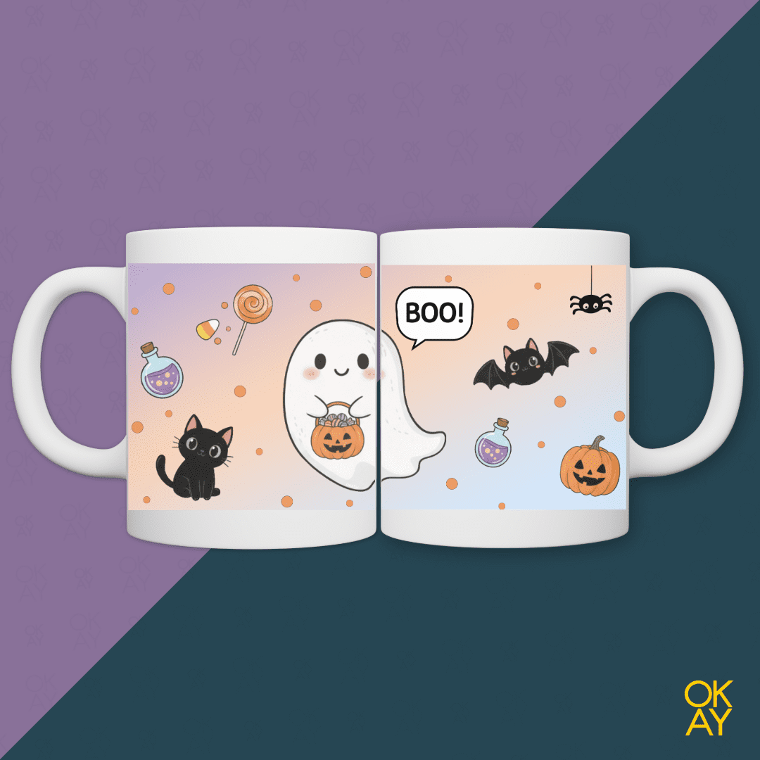 Caneca em porcelana personalizada com o tema de halloween coleção de 2025.
