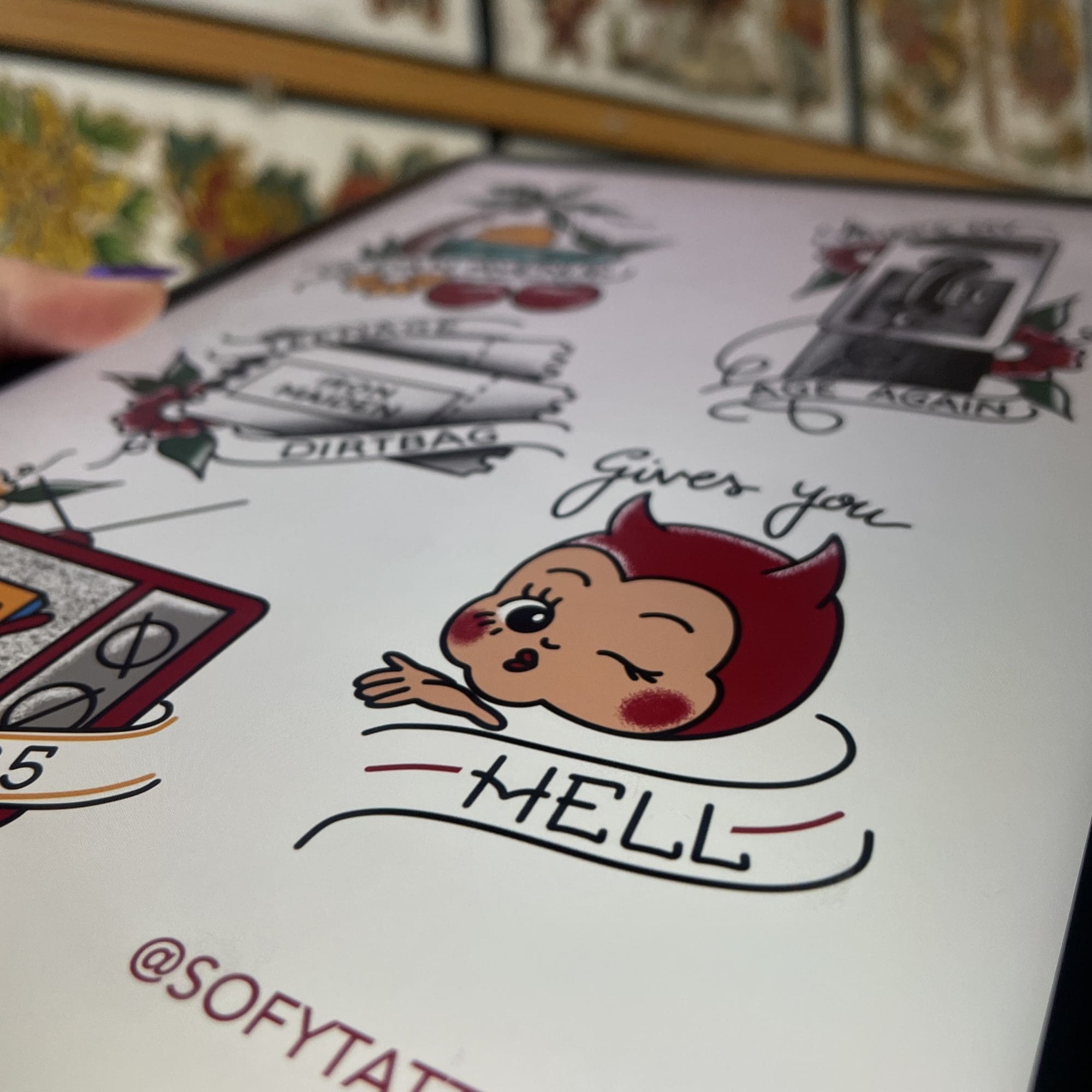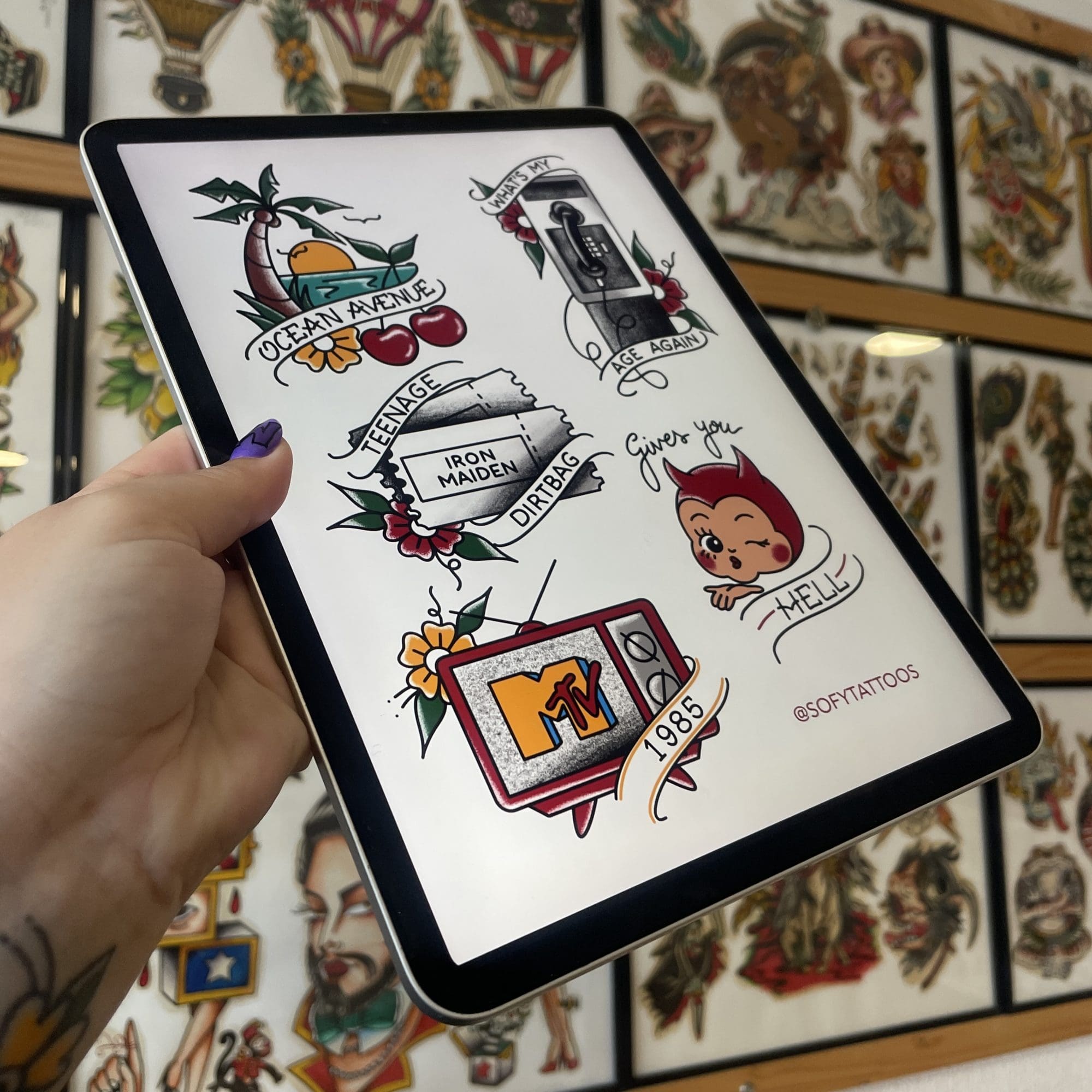 Pop punk (Wheatus, Blink 182, The all American rejects, Bowling for soup, Yellowcard) traditional tattoo flash.